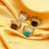 This ring features a unique and modern design. A square transparent crystal is set on the golden ring band, sparkling with charming light under illumination. The overall shape of the ring is simple yet elegant. The golden color symbolizes nobility and luxury, while the square crystal adds a touch of fashion and individuality. Whether for daily wear or important occasions, this ring can become the center of attention, showcasing the wearer’s taste and temperament.