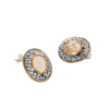 Surrounding the large orange stones is a border of small, clear crystals. These crystals add an extra touch of luxury and sparkle to the earrings. They are meticulously set, enhancing the overall glamour of the piece. The contrast between the large, bold orange stones and the delicate, shimmering crystals creates a visually appealing and balanced design.